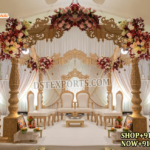 This mandap is ideal for destination weddings and luxury venues across the UK, USA, Canada, and Australia, offering both opulence and practicality through its modular, easy-to-assemble structure.